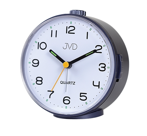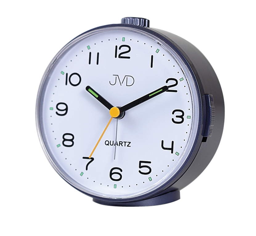 Analogový budík JVD sweep tmavě šedé perleťové barvy s plynulým chodem