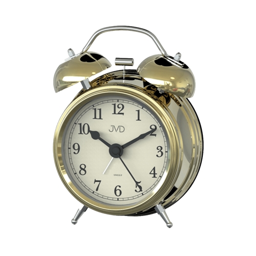 Ručkový budík JVD sweep s tradičním kovovým designem a tichým chodem