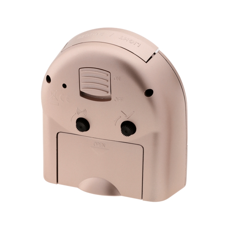 Analogový budík JVD sweep bílé perleťové barvy s plynulým chodem