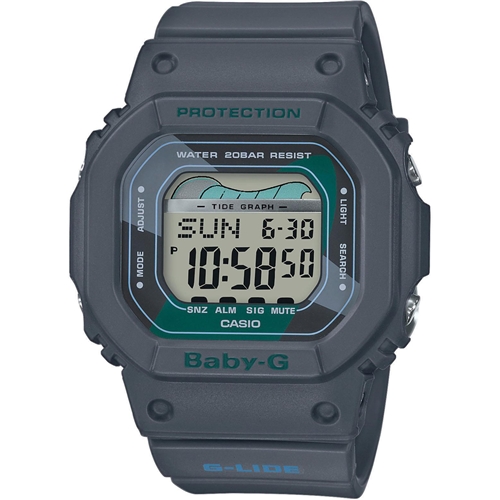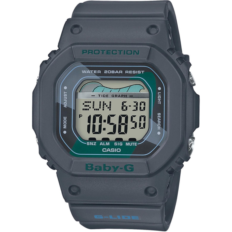 Dámské sportovní hodinky Casio BABY-G s vodotěsností 10 ATM, digitální zobrazení času, podsvícený displej, budík, stopky, světové časy, datum.