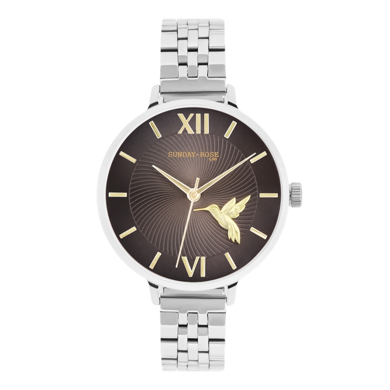 • Ciferník - s indexy a římskými číslicemi, zdobený kolibříkem