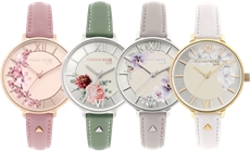 • Ciferník - s indexy a římskými číslicemi, zdobený květy