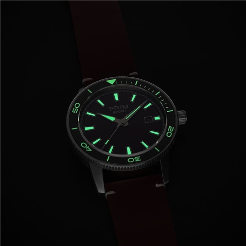 Sportovní pánské hodinky s číselníkem osazeným speciálními kapilárami plněnými tritiem (T25), vyrobenými ve Švýcarsku, jež jsou upevněny v hodinových indexech a ručičkách. V případě PRIM Sport Tritium 25 – World Timer jsou kapiláry v kombinaci oranžové na pozici 12 hodin a zelené na ostatních indexech.