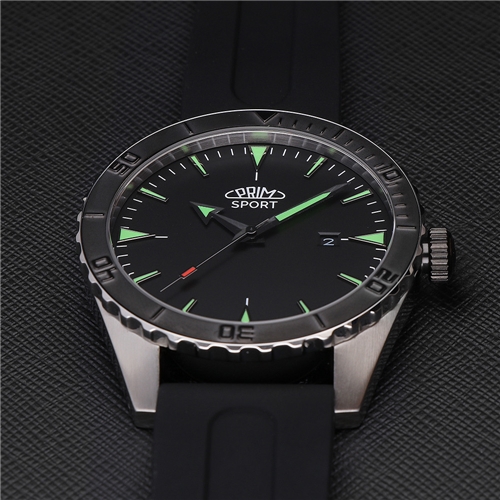 Sportovní pánské hodinky značky Prim s ocelovým pouzdrem a s automatem kalibr 8215 s možností natáhnutí ocelovou korunkou.