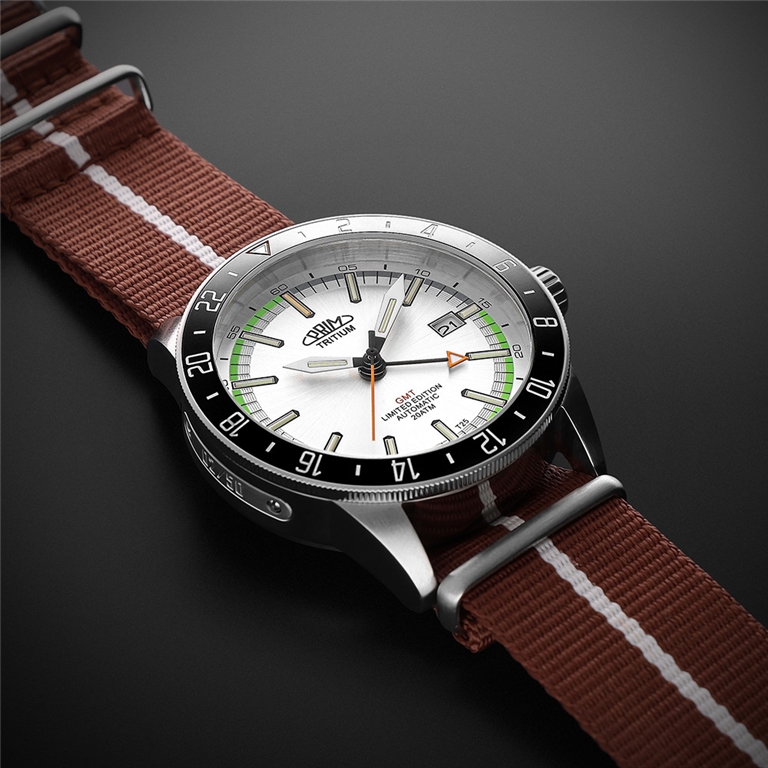 Sportovní pánské hodinky s číselníkem osazeným speciálními kapilárami plněnými tritiem (T25), vyrobenými ve Švýcarsku, jež jsou upevněny v hodinových indexech a ručičkách. V případě PRIM Sport Tritium 25 – World Timer jsou kapiláry v kombinaci oranžové na pozici 12 hodin a zelené na ostatních indexech.