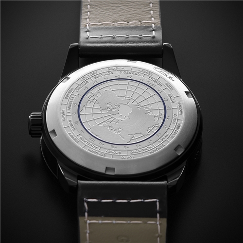 Číslice na keramické vložce lunety jsou opatřeny luminiscenční barvou, která zajišťuje bezchybnou čitelnost sekundárního času i za zhoršených světelných podmínek. Jistotu, že tyto hodinky Vám budou sloužit dlouhá léta, poskytuje jejich precizní zpracování ze špičkové ušlechtilé oceli 316L, odolné safírové sklíčko s antireflexní úpravou a osvědčený japonský automatický strojek – kalibr NH34 s nástavbou GMT. Samozřejmostí je vodotěsnost 20 ATM a originální víčko hodinek s vyobrazením globu a časových pásem. Pro zvýraznění detailů jsme použili olejovou modrou výplň na ohraničení globu i samotných časových pásem.
