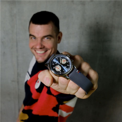 Tváří letošní kolekce se stal náš ambasador, biatlonista Michal Krčmář, který měl hodinky jako první na ruce a fotil s nimi v překrásných prostorách Národní technické knihovny.