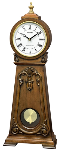 Krásné stylové dřevěné stolní hodiny japonského výrobce Rhythm s kyvadlem a odbíjením.