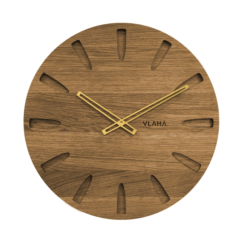 Vůně dubového dřeva a přírodních olejů se rozline ve Vašem bytě, jakmile na stěnu pověsíte nové dřevěné hodiny VLAHA.