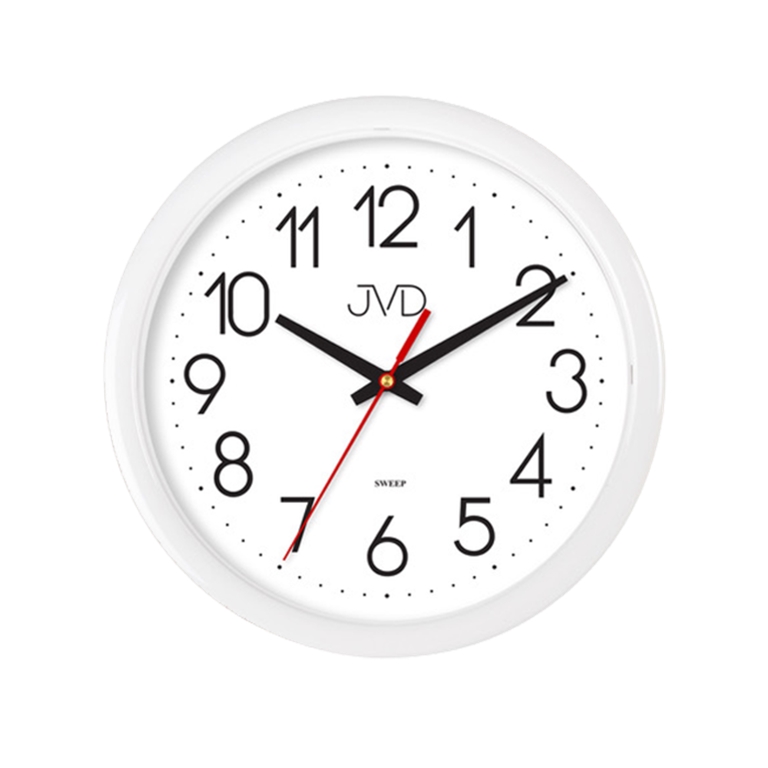 Nástěnné hodiny JVD sweep s plynulým tichým chodem.