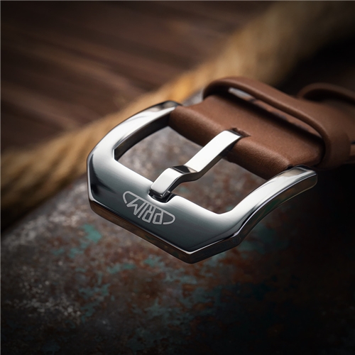 Celkový dojem hodinek umocňuje volba ručně vyrobeného a pečlivě prošitého řemínku z prvotřídní hovězí kůže. Řemínek je vybaven rychloupínacími stěžejkami pro snadnou výměnu a doplňuje jej výrazná, leštěná nerezová spona s precizně gravírovaným logem PRIM