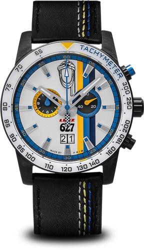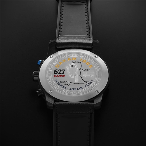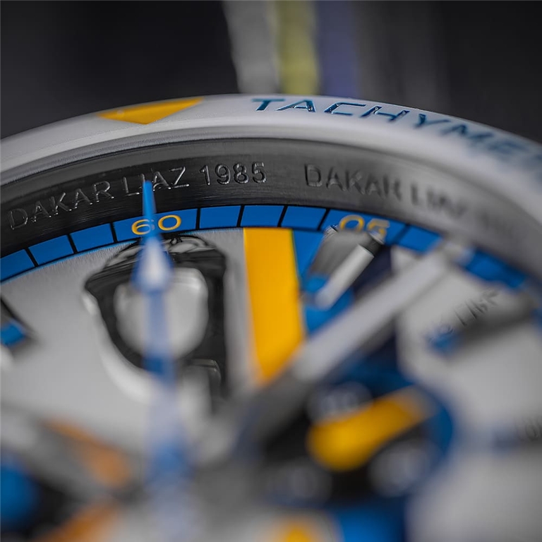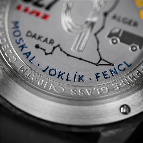 Celý vzhled podtrhuje bílá keramická luneta tachymetru, laděná do tradičních barev LIAZ. Jemným detailem je i rytina Dakar LIAZ na vnitřní straně pouzdra.