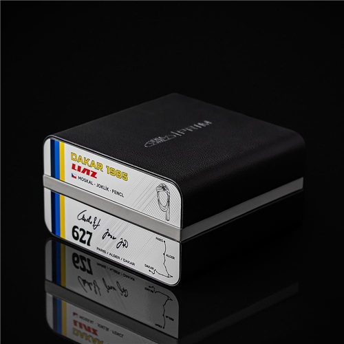 Každé hodinky jsou dodávány v tematické krabičce se záručním listem a servisní kartou. Součástí limitované edice je také unikátní stavebnice LIAZ 1985, podepsaná samotnými jezdci legendární posádky.