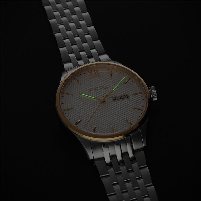 Nový je také propracovaný plastický číselník s fasovanými indexy na jehož vnějším okraji je zobrazena minutová stupnice. Nechybí ani oblíbené luminiscenčními prvky ručiček. Hodinky PRIM Klasik 25 přináší nejen sofistikovaný vzhled, ale i praktické funkce, včetně zobrazení dne v týdnu v češtině a data.