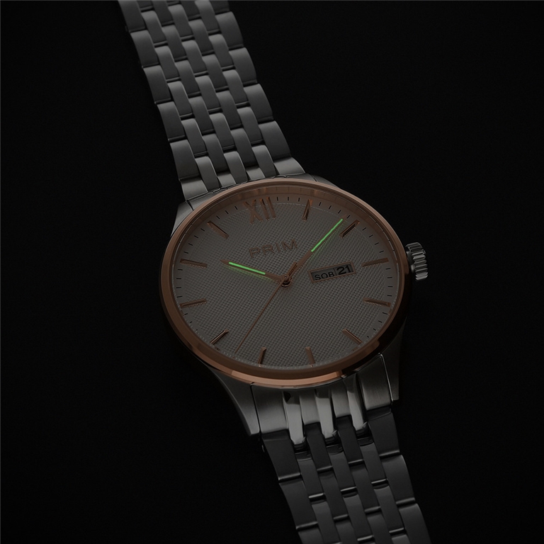 Nový je také propracovaný plastický číselník s fasovanými indexy na jehož vnějším okraji je zobrazena minutová stupnice. Nechybí ani oblíbené luminiscenčními prvky ručiček. Hodinky PRIM Klasik 25 přináší nejen sofistikovaný vzhled, ale i praktické funkce, včetně zobrazení dne v týdnu v češtině a data.