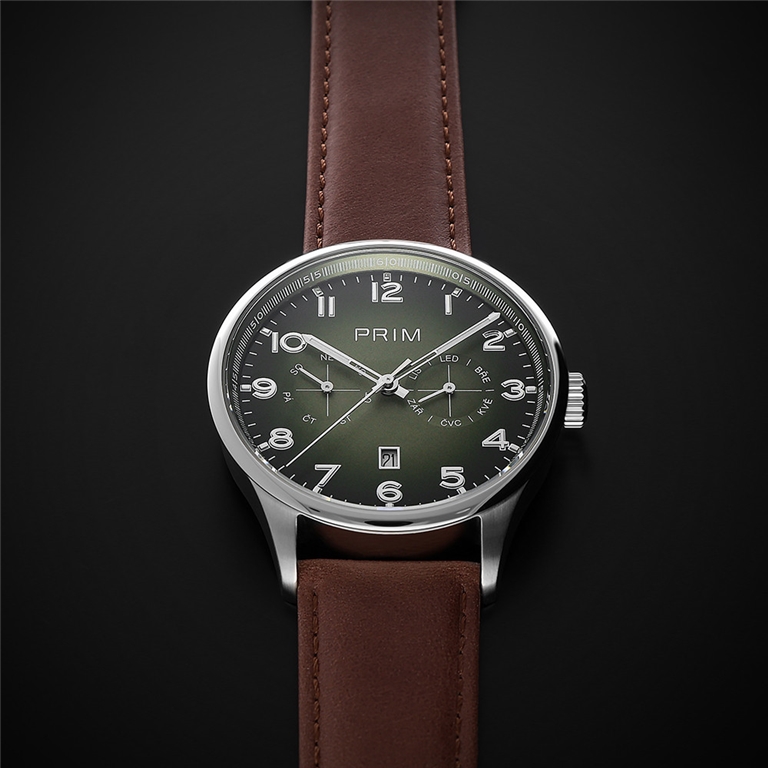 PRIM MANAGER 2025 – sportovně elegantní model v různých barevných provedeních. Spolehlivý automat s kalibrem Miyota 9122, safírovým sklem a podsvícenými indexy, který zaujme na každé pánské ruce.