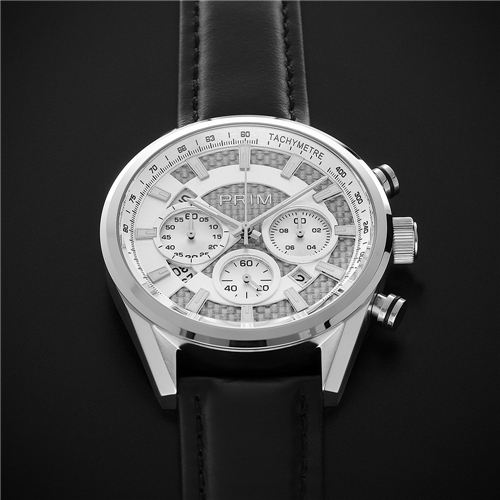 Populární model PRIM Master 25 s leštěným pouzdrem a moderním ciferníkem s chronografem oživí a zvýrazní image svého majitele. PRIM Master 25 – dokonalá rovnováha mezi sportovní dynamikou a nadčasovou elegancí, nyní s uhlíkového vlákna (karbonu) pro ještě exkluzivnější vzhled. Hodinky, které podtrhnou váš styl a zaujmou na první pohled.