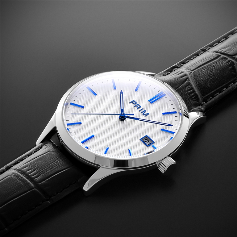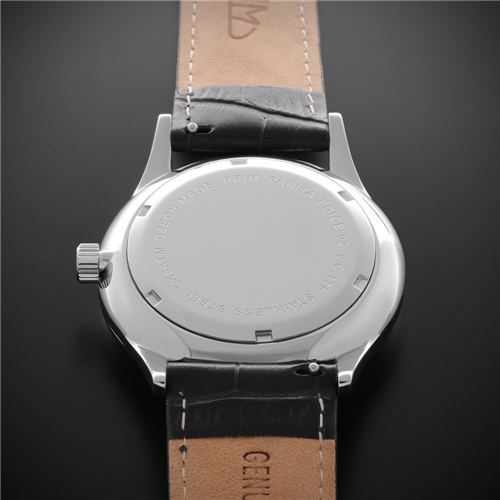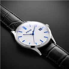 Nový model s ciferníkem se strukturou doplňují jemné ručičky s luminiscenční vrstvou. Model je vyroben v 5 barevných provedeních a dodáván s kvalitním koženým řemínkem se vzorem krokodýla (easy click). Modely hodinek PRIM Parita jsou dodávané v krabičce se záručním listem a návodem.