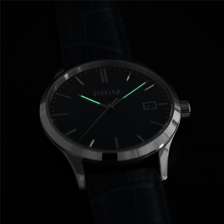 Nový model s ciferníkem se strukturou doplňují jemné ručičky s luminiscenční vrstvou. Model je vyroben v 5 barevných provedeních a dodáván s kvalitním koženým řemínkem se vzorem krokodýla (easy click). Modely hodinek PRIM Parita jsou dodávané v krabičce se záručním listem a návodem.