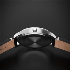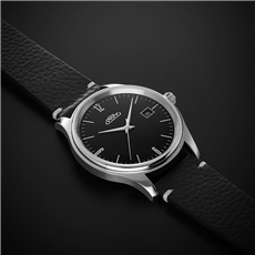 Uvnitř těchto bateriových hodinek pracuje Quartz ETA F06.412. Doplněny jsou kvalitním koženým řemínkem.