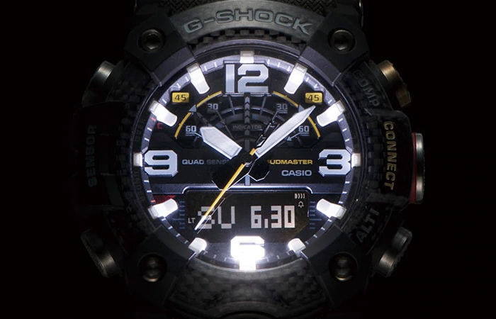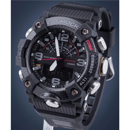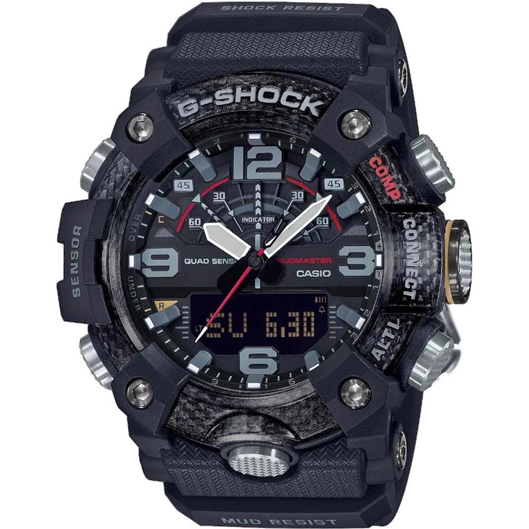 Vysoce odolné pánské hodinky Casio G-SHOCK Mudmaster Carbon Core Guard s bluetooth připojením k mobilnímu telefonu, krokoměrem, kompasem, teploměrem a dalšími funkcemi..