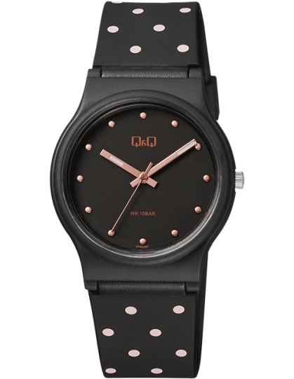 Vodotěsné hodinky s černým páskem s růžovými puntíky